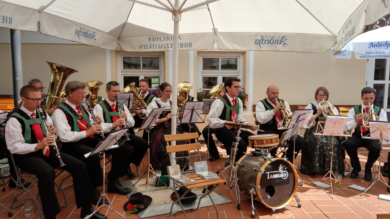 Am Sonntag ging es nach dem Frühstück zum Biergarten des bekannten Wallfahrtsortes Kloster Andechs, welcher in Bayern auch als Heiliger Berg bezeichnet wird. Zum Kloster, welches der Benediktinerabtei St. Bonifaz in München untersteht, gehört neben einer Bierbrauerei, eine Schnapsbrennerei, eine Metzgerei sowie ein Biergarten mit zugehörigem Bräustüberl. Nach einer kurzen Führung durch die Klosteranlage und der schönen Wallfahrtskirche unterhielt die Zwölfmalgreiner Böhmische bis in den frühen Nachmittag hinein die Gäste aus Nah und Fern im vollbesetzten Biergarten.
